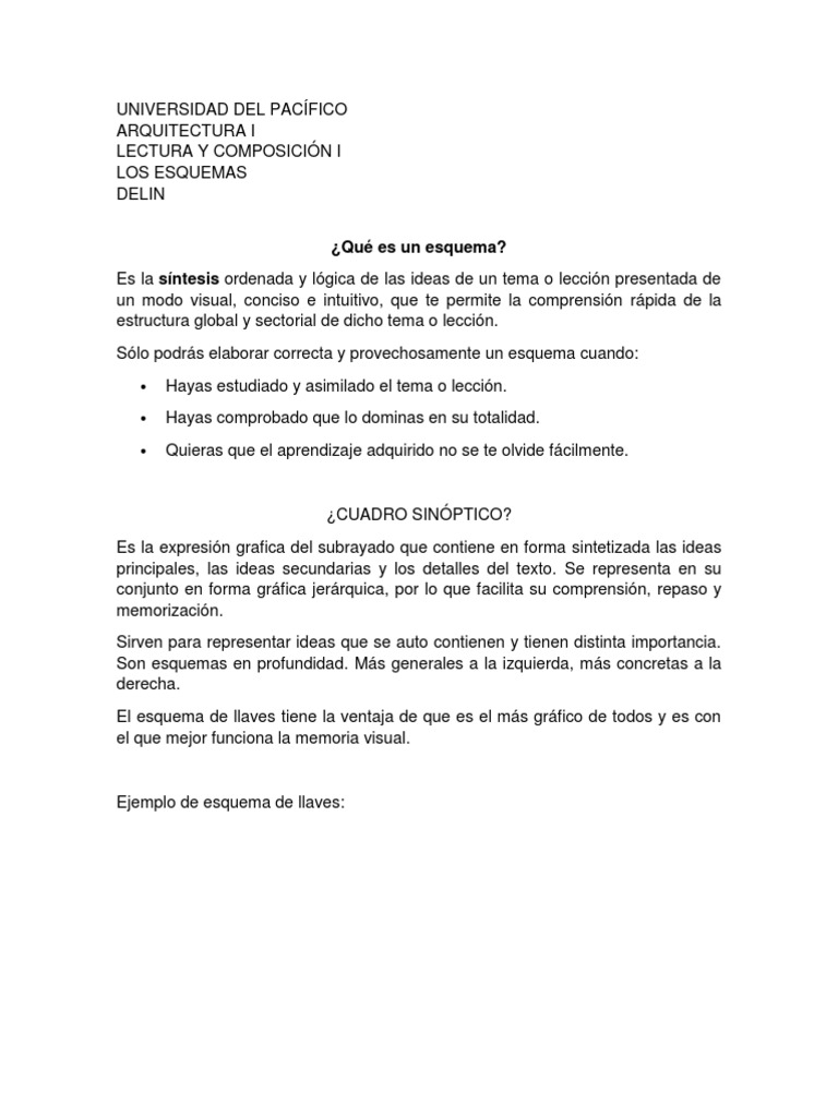 El esquema de llaves tiene la ventaja de que es el más gráfico de todos y es con el que mejor funciona la memoria visual. Diagrama en v & esquema de llaves. Esquema un esquema es el esqueleto del tema estudiado que lo presenta en su conjunto en forma gráfica jerárquica por lo que facilita su comprensión, repaso y memorización. A veces, por razón de espacio, va arriba. Los cuadros siguientes son ejemplos de esquemas de llaves que te servirán para comprender mejor todo lo que te explicamos en este blog. Alterna el uso de la letra imprenta (mayúscula y minúscula). A través de llaves desglosa las principales ideas con sus divisiones y subdivisiones subsiguientes. ¿por qué es importante realizar un esquema? El esquema de llaves es una representación gráfica jerarquizada. En los esquemas pueden usarse recuadros, líneas, flechas, llaves, letras o barras y más elementos que ayuden a organizar el texto. Indica qué actividades deben ser estrictamente controladas para lograr el objetivo en el momento adecuado. Start date feb 24, 2011. Es la expresion gráfica del subrayado que contiene de forma sintetizada las ideas principales, las ideas secundarias y los detalles del texto.